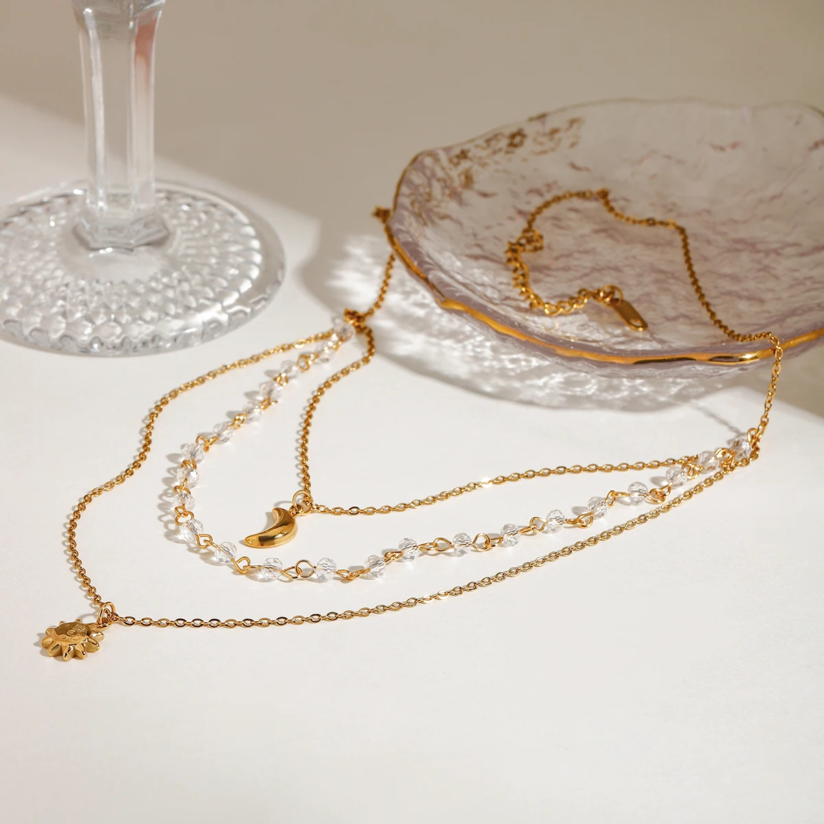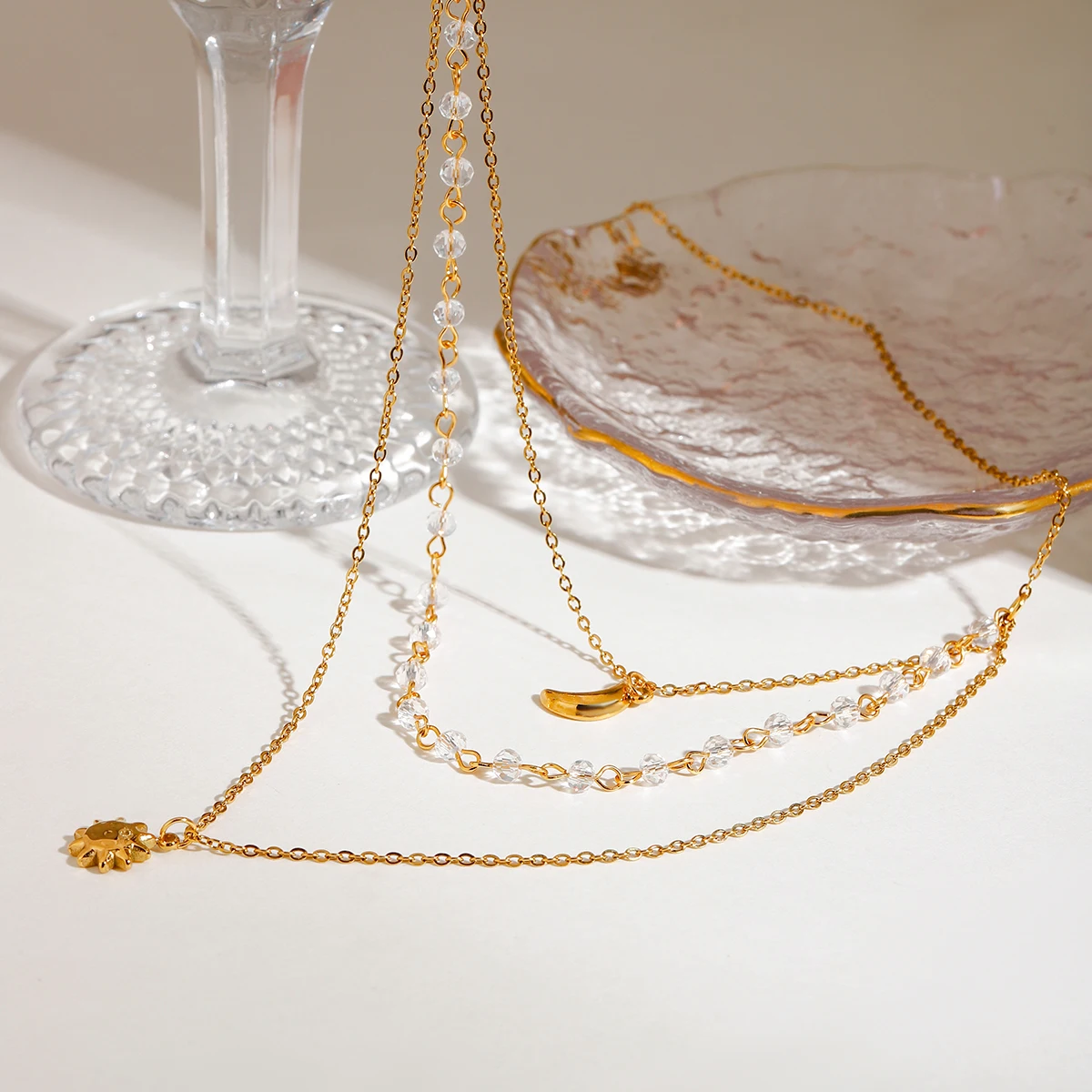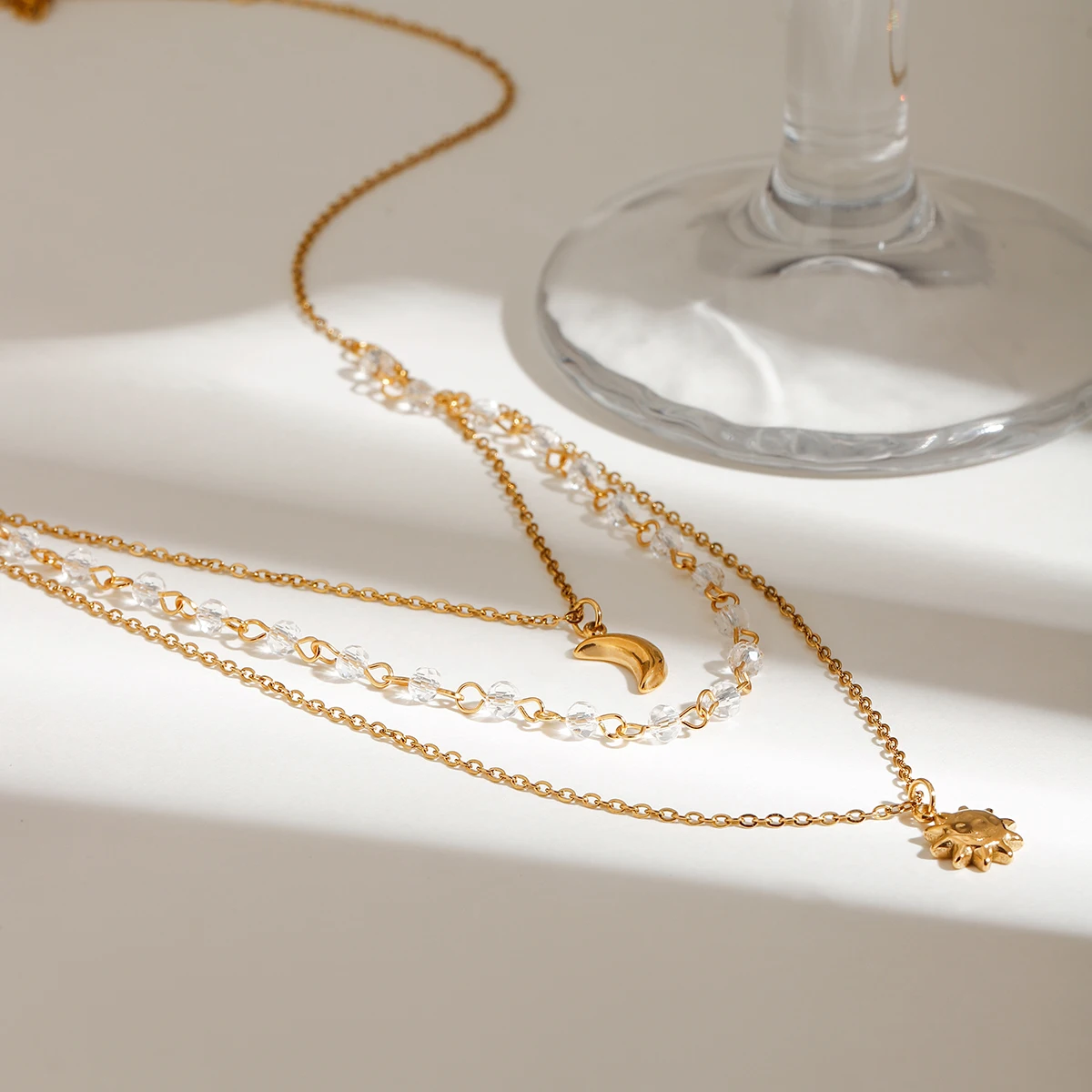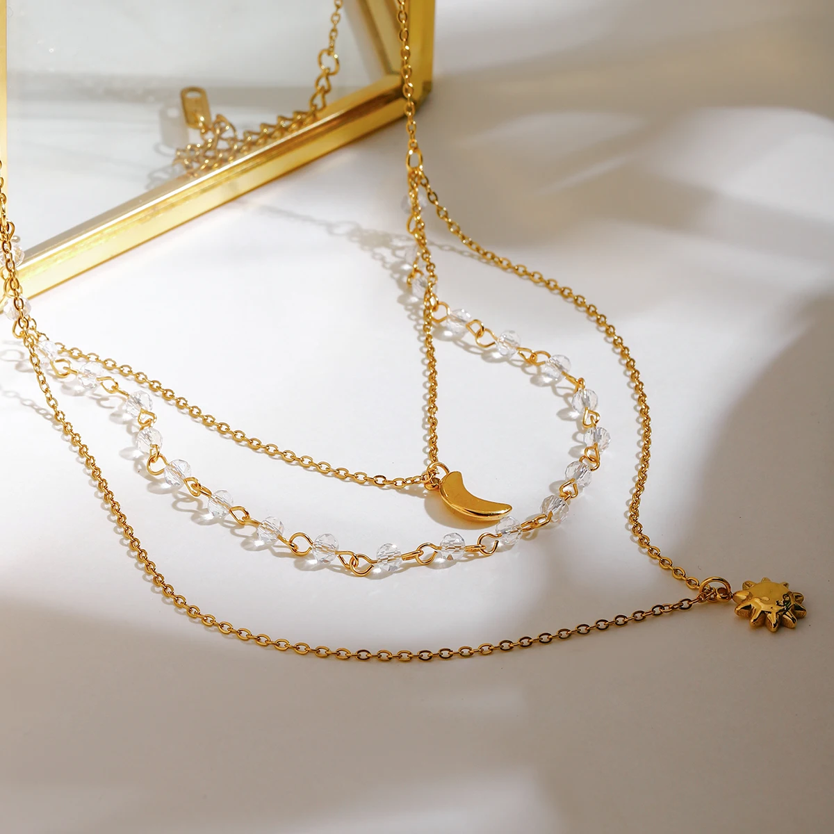 Zora Boho Holiday Style Stainless Steel Star and Moon Pendant Necklace 18K Gold Plated Multi Layer Women Fashion Accessories