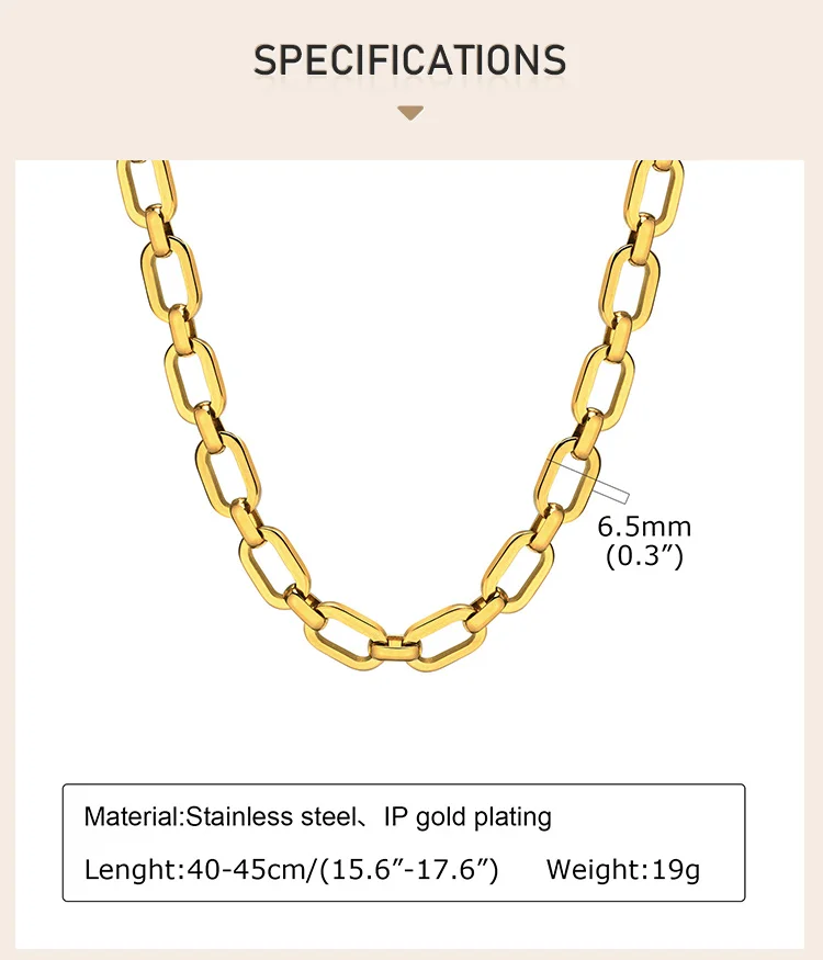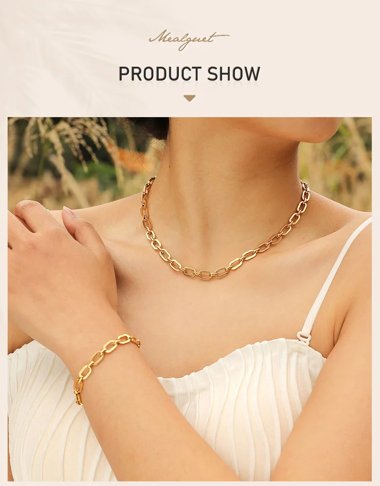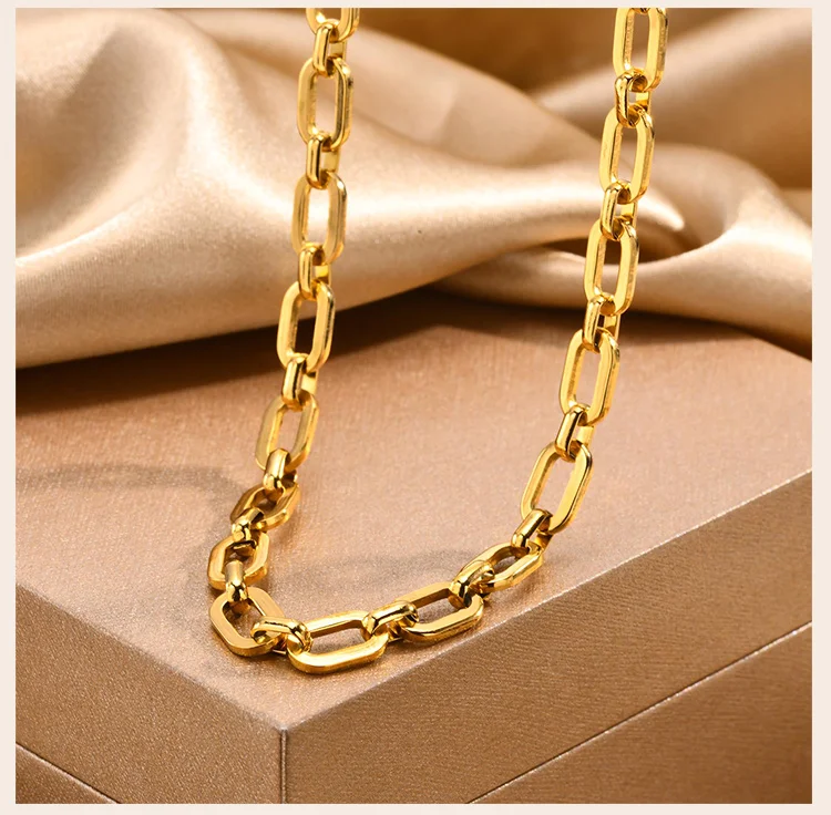Gold plated chunky necklace for women, stainless steel oval thick chain, simple jewelry